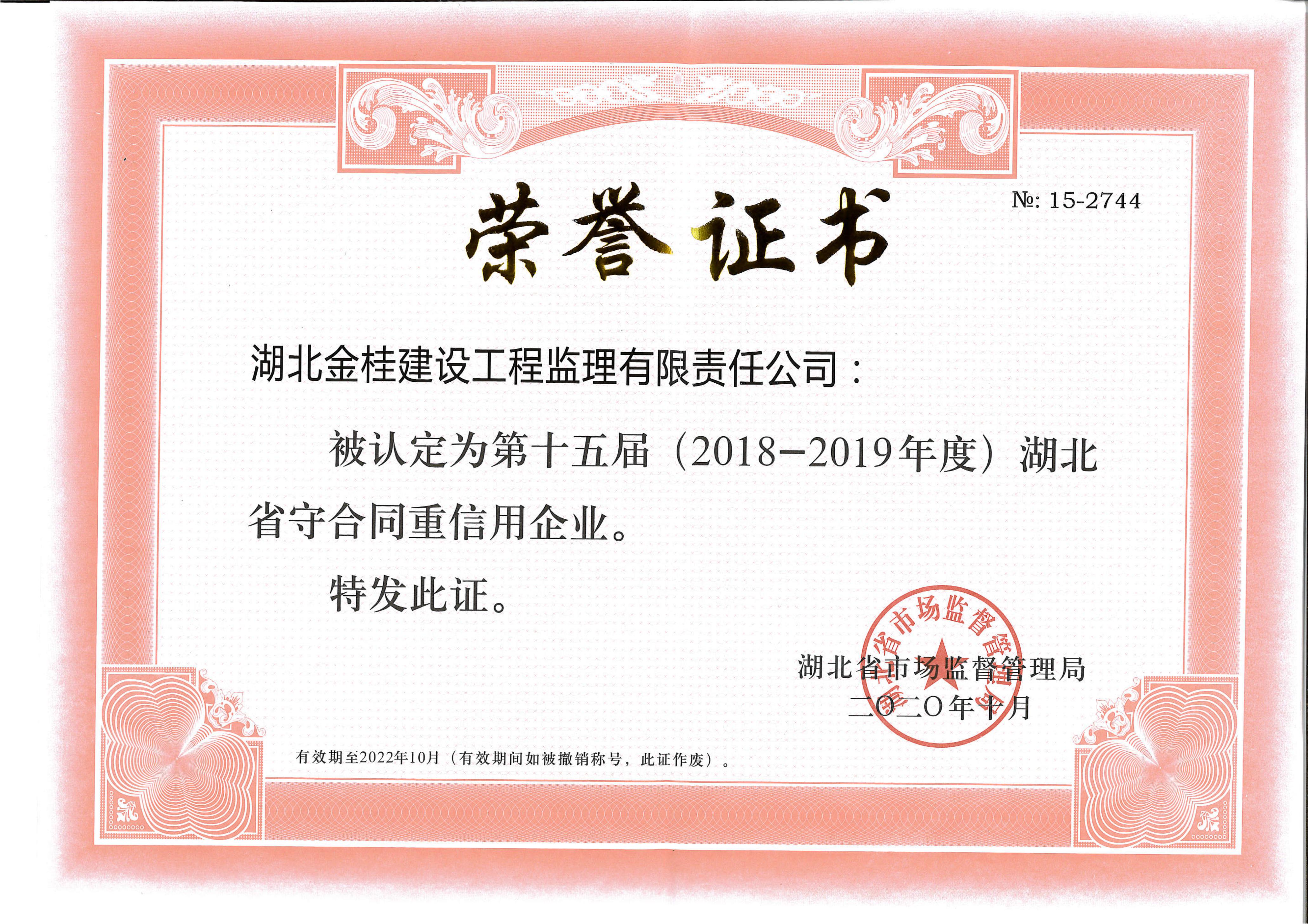 2018-2019年省、市級(jí)守合同重信用單位